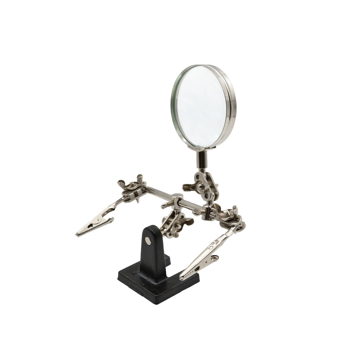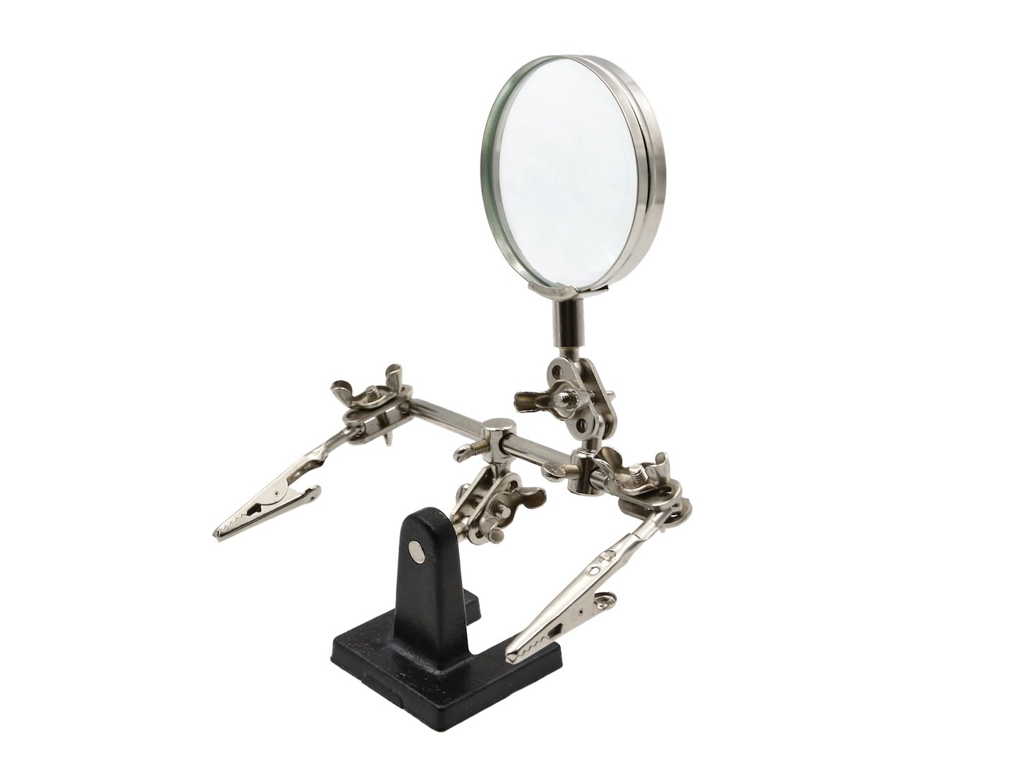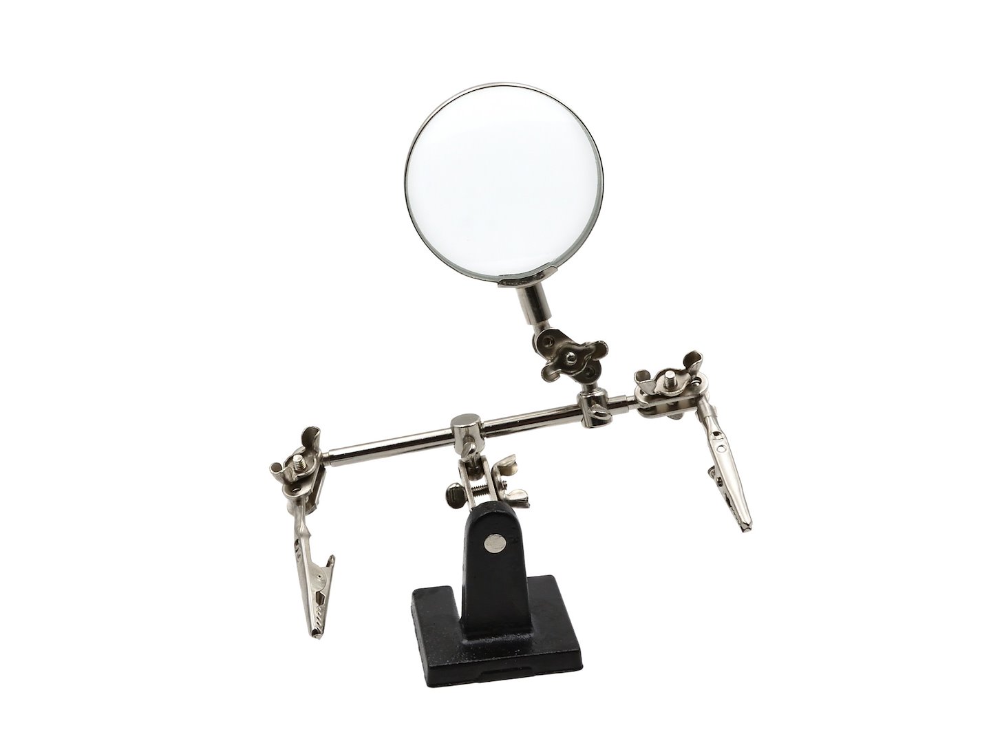 "Kolmannen käden" suurennuslasi tarkkuustyöhön. Välttämätön työkalu tarkkuustyöhön. Erityisen arvostettu mallinnuksessa, juottamisessa, kellojen kokoonpanossa tai korjauksessa ja kaikissa muissa tarkkuustöissä, jotka vaativat kahta vapaata kättä