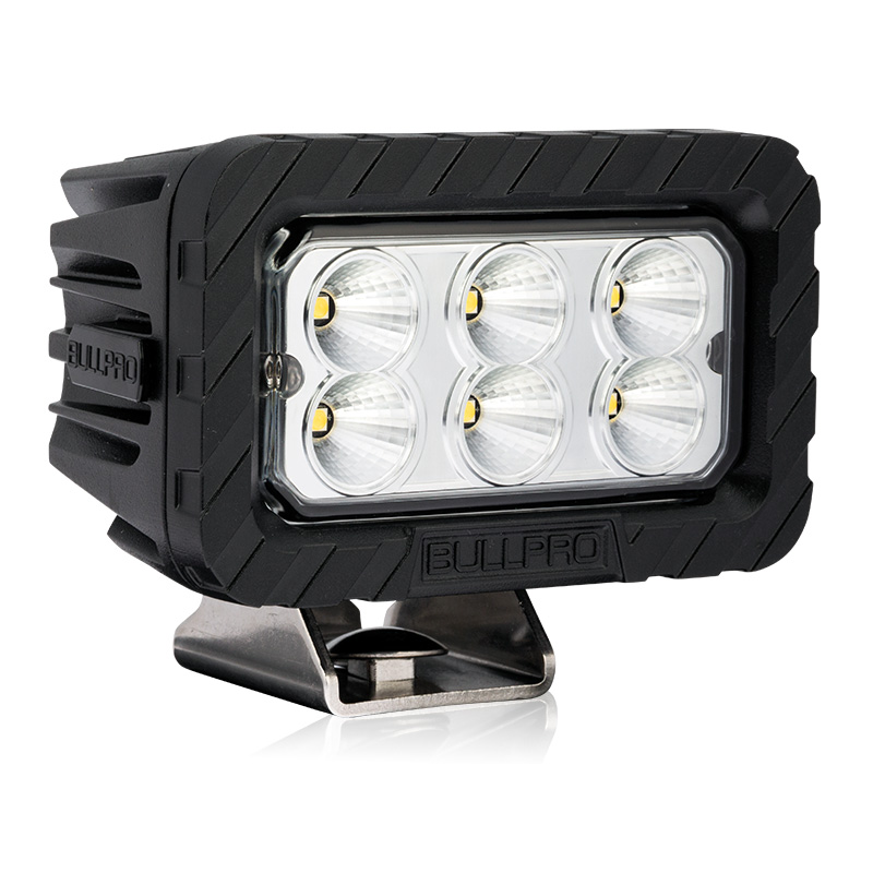 Kuvaus: 6 x 9W Osram, 3800lm (tehollinen), 5000lm (lask.), 5000K, pistevalo, alumiinirunko: korroosiosuojamaalattu, lasilinssi, asennusjalka ruostumatonta terästä (316), integroitu Deutsch DT-2 liitin, kumikaapeli. 12V 3.08A – 24V 1.51A, 20Grms (24-2000Hz), ADR, EMC CISPR 25 Class 5, käyttölämpötila-alue -40°C … +85°C