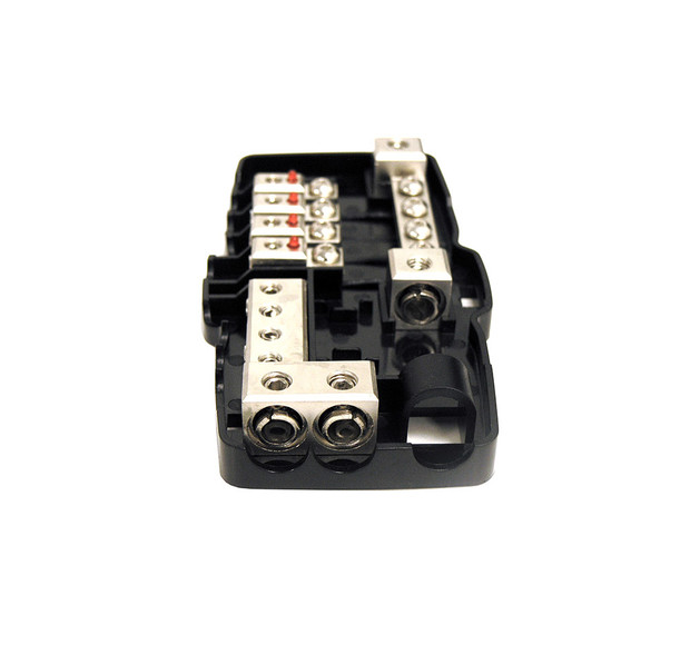 Tässä tuotteessa on samassa sekä virtapuolen jakoblokki että maapuolen jakoblokki.