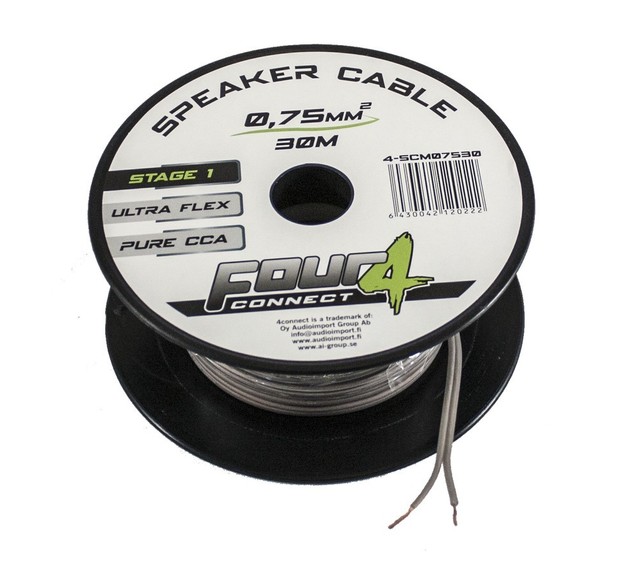 4Connect 4-SCM minikelat ovat edullinen ratkaisu kaiutinkaapelin tarpeeseen. Keloja on saatavilla kahta eri pituutta, 15 ja 30 metriä. Kaapelikoot 0.75, 1.5, 2.5 ja 4.0 mm2. Hienosäikeisessä OFCA-kaapelissa on joustava silikonipohjainen kumieriste joka pysyy notkeana pakkasellakin.