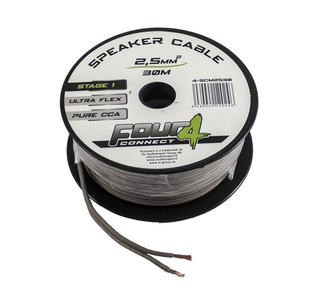 4Connect 4-SCM minikelat ovat edullinen ratkaisu kaiutinkaapelin tarpeeseen. Keloja on saatavilla kahta eri pituutta, 15 ja 30 metriä. Kaapelikoot 0.75, 1.5, 2.5 ja 4.0 mm2. Hienosäikeisessä OFCA-kaapelissa on joustava silikonipohjainen kumieriste joka pysyy notkeana pakkasellakin.
