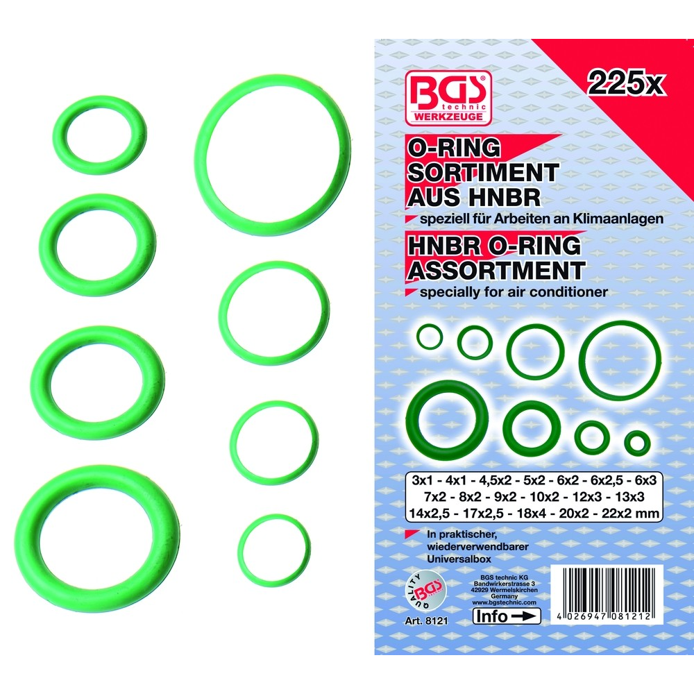 O-rengaslajitelma 141 kpl, kumi ja lasikuitu