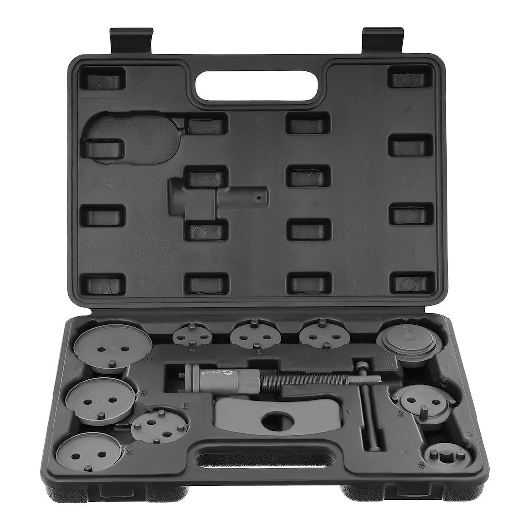 12-osainen jarrumännän palautus-/puristussarja, välttämätön levyjarruilla varustettujen ajoneuvojen korjauksiin.
