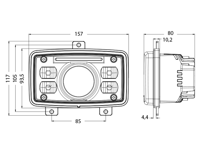 Kuvaus: Agriline ajovaloumpio 3×5, led parkilla, upotettava, H4 pistokkeella, polykarbonaattilinssi, alumiinirunko, teoreettinen valoteho 5600lm, mitattu 2690lm, virrankulutus: Low 13.7V/ 1.51A, High 13.7V/ 3.89A, 6000K, IP68. Valtra: A–A3, C, M, N–N3, S, T–T3, XM