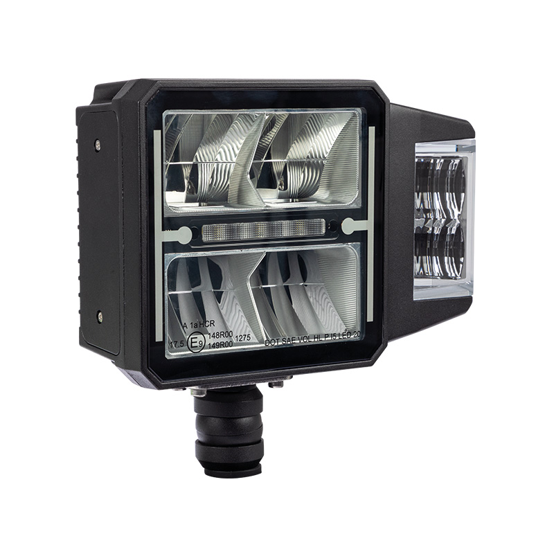 Kuvaus: Led-ajovalo, lyhyet 24W/1800lm – pitkät 48W/3600lm, parkki 3W, vilkku 12W, automaattinen lasin lämmitys 22W, ref 17.5, korkeus jalalla 176mm, jalan kiinnitys rungon alla tai taakse.