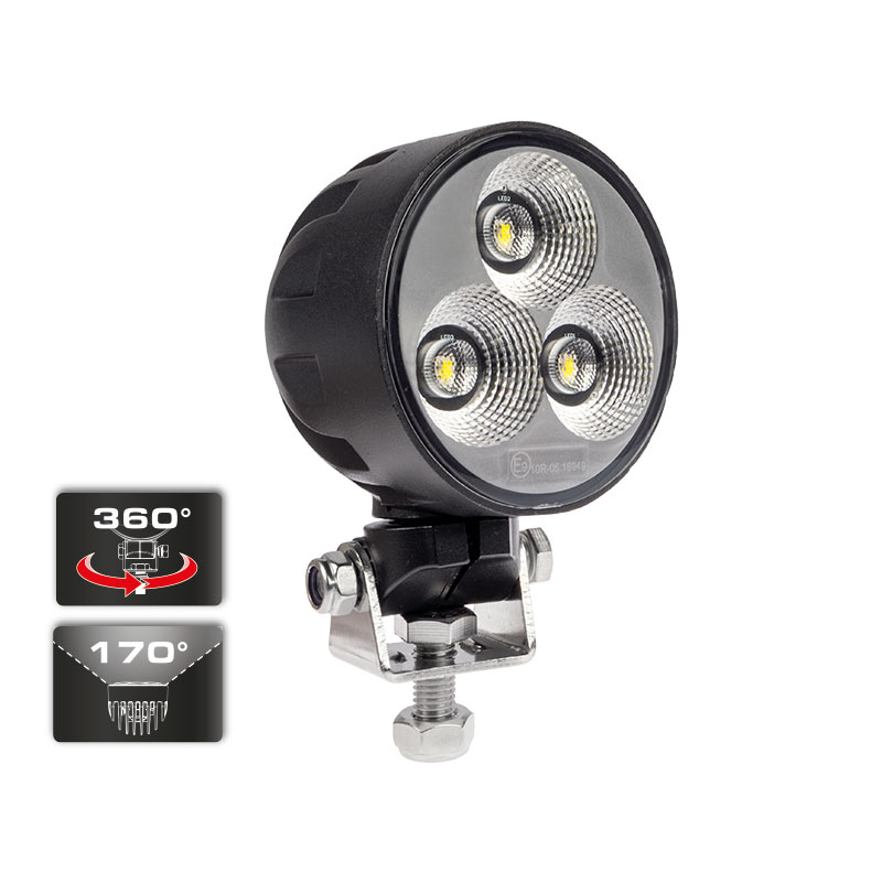 Kuvaus: 3 x 15W LED, 360° pyörivä ruostumaton kiinnikejalka, erittäin leveä valokuvio 170°, alumiinirunko, polykarbonaattilinssi, virrankulutus 12V / 2,93A