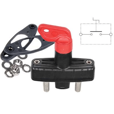 Kuvaus: muovia, kiinteä avain, 200A @24V – 1500A (5s), esim. akun irti kytkeminen 12/24V ajoneuvon sähköjärjestelmästä ja jännitteen katkaisu laturilta, laadukas lämpömuovirakenne: hyvä kemikaalien ja ympäristöolojen sieto, pitkä ja kapea muotoilu mahdollistaa asennuksen ahtaisiin ja vaikeassti tavoitettaviin paikkoihin. IP65, liitännät: M10 pultit (Inox), kiinnitys 2xM6, reikäväli 80mm, -40°C … +85°C, suositeltava kaapelikoko 70mm²