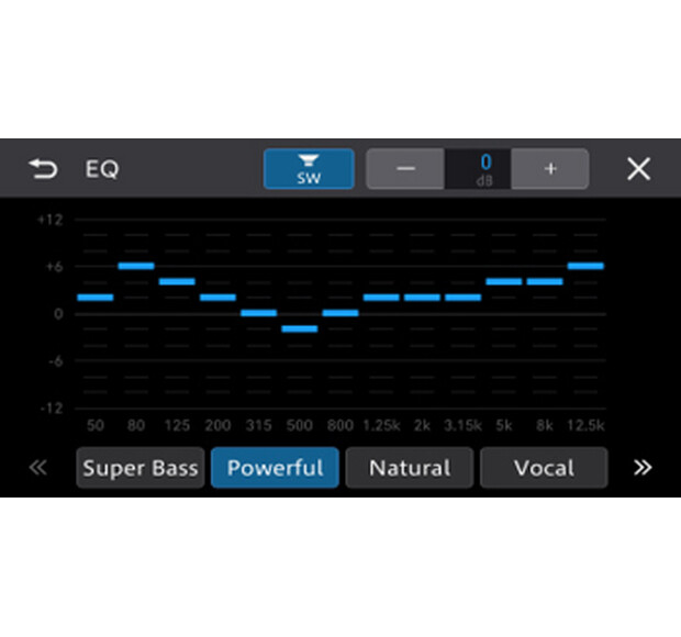 taajuuskorjaimen säätötaajuudet 50Hz/80Hz/125Hz/200Hz/315Hz/500Hz/800Hz/1.25kHz/2kHz/3.15kHz/5kHz/8kHz/12.5kHz
