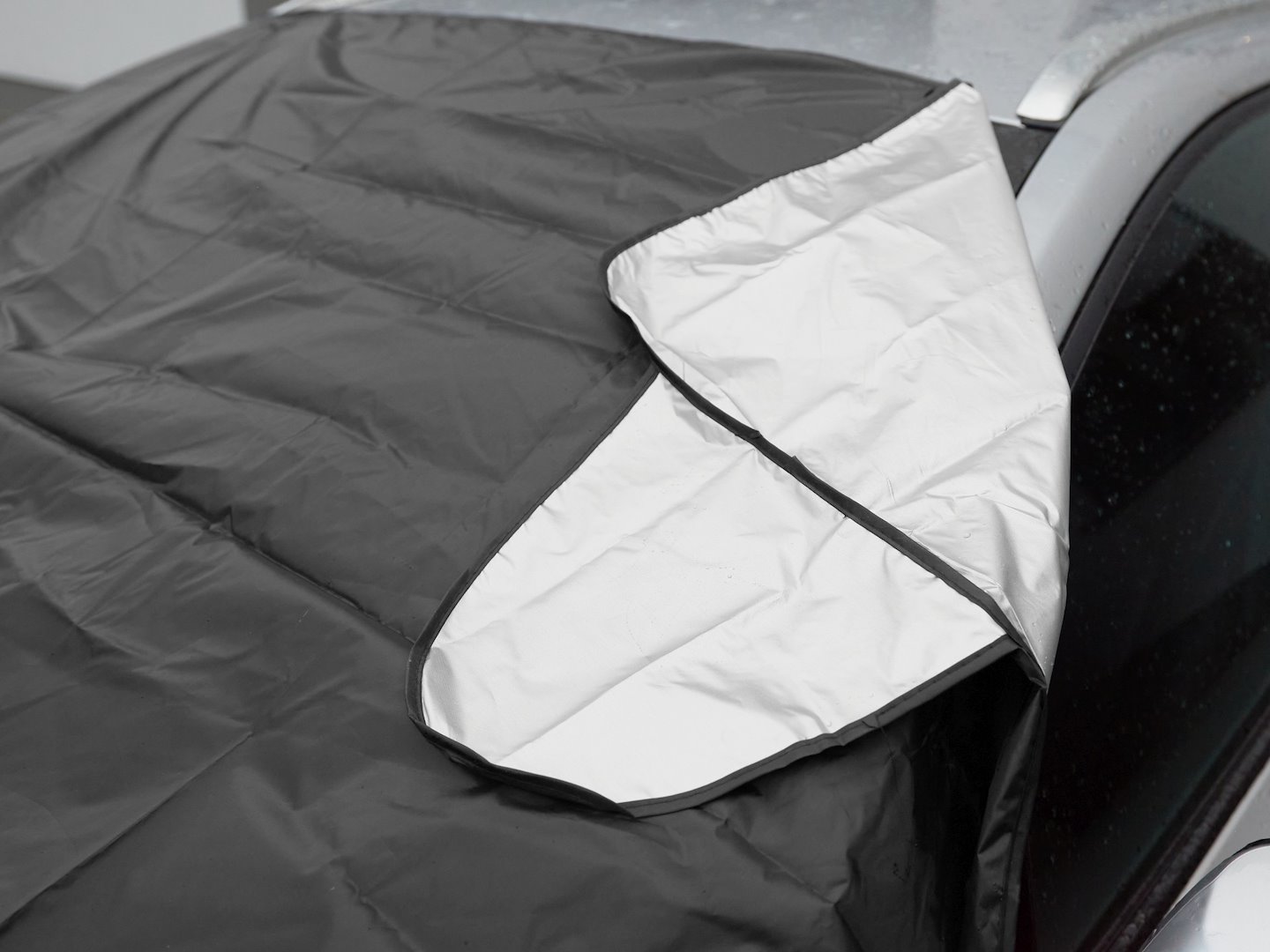 Helppo koota ja purkaa: Matto on varustettu vahvoilla ferriittimagneeteilla, jotka on ommeltu erityisiin suojataskuihin, jotta ne eivät vahingoita maalipintaa. Magneetit on sijoitettu sopiviin kiinnityskohtiin, mikä mahdollistaa maton tarkan asennuksen auton tuulilasiin. Lisäksi matossa on sivuläpät, jotka voidaan helposti sulkea auton ovea painamalla.
